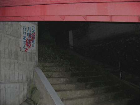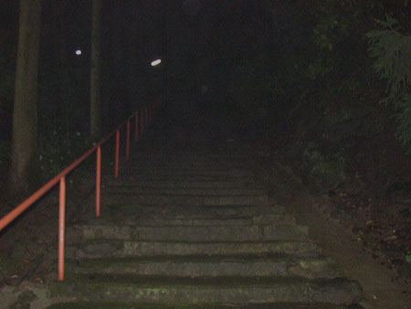 奈良県某所の廃墟群の探索を終えた(一部ですが・・・)私たちは次なる目的地である「ビルマ僧院跡」に向けて、車を走らせました。 まず目指すのは探索の出発点となる京阪電鉄の八幡市駅です。 実は廃墟群を出発した後、私たちはある情報を元に某所の廃墟を探しており、八幡市駅に到着したのは23時を回っていました。 駅から少し離れた有料駐車場に車を駐めた私たちは、持参したおにぎりをひとつ頬張り、装備を整えて探索に入ることにしました。 ここでは、登っている途中で鈴の音が聞こえたとか、知らぬ間に小学校低学年くらいの子供が後ろからついてきていたなどの噂があるようです。 私たちはその小学生と出会うことができるのでしょうか? 探索日時:2003年7月5日 23時頃 探索メンバー:管理人ピフィア師匠(以下、師匠)と私kuniの2名 |