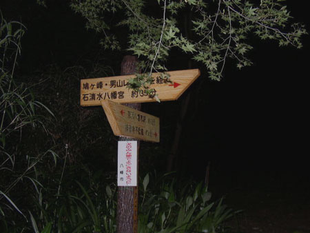 しばらく階段を登ると、こんな道しるべがありました。 八幡宮まで約35分かかるそうです。 |