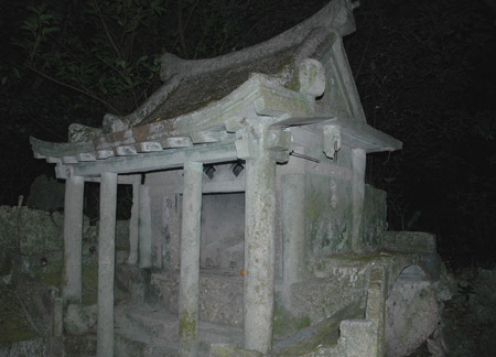 拝所の左横に建ってられている石塔ですが、石塔の上部には凹状の反射鏡のような物がはめ込まれています。 どのような意味があり建てられているのかは私には全く分かりませんが、聖域と何だかの関係がありそうな気がします。 |