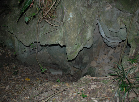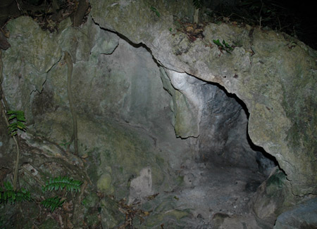 この岩の空間も溶けたような感じになっている事から、やはり岩は石灰岩だと思われます。 岩の空間は結構広く、中からは霊的な気配も漂っています。 岩の空間に隠れるようにし、かなり怯えている老婆の顔が見えます。 私には、何に怯えているのかは分かりませんが・・・ |