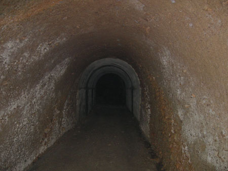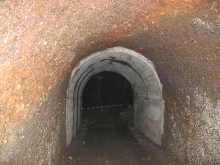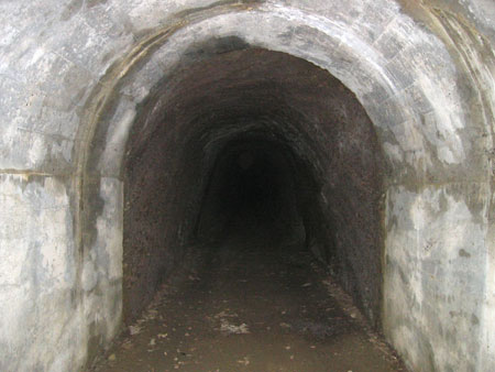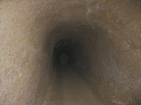 第三トンネルに進入しました。 この第三トンネルは、第一トンネルや第二トンネルと比べると、壁面が凸凹していて何となく穴の掘り方が雑なように感じますが、気のせいでしょうか? こうして凸凹したトンネルの穴を見ていると、大蛇の巣を見ているような感じがしてきますが、そう考えると何となく蛇の気配がするような気がしてきました。 生きた蛇にせよ、死んだ蛇にせよ狭い穴の中ではあまり遭遇したくないものです。 |