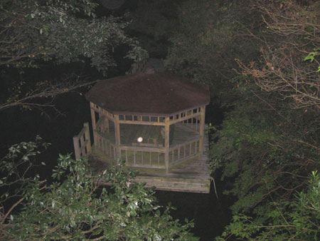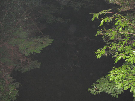 橋の上から見た小笠池対岸の休憩所です。 写真には明るい光の塊が写っていますが、虫でしょうか? 小笠池なのですが、この池も自殺した人の溺死体が発見されたことがあるらしく、霊を目撃した人もいるそうです。 もしかしたら写真に写ってる光はそんな自殺者の魂なのかもしれません。 |