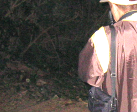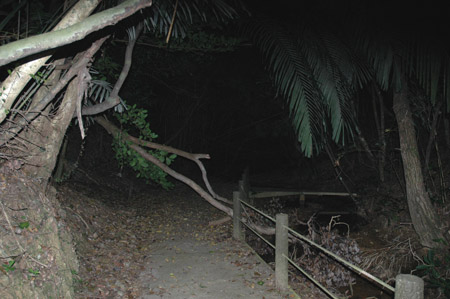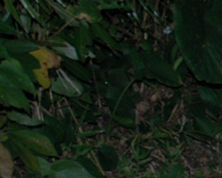 更に奥へと進みます。 この写真では全く目立たない存在ですが、奇妙な緑色の光る点が写っているので拡大してみます。 |
