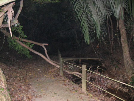 橋から更に奥の方にはモヤが出ているよう見えますが・・ 私には数え切れないくらい多くの顔が写っているように見えます。 ここから先は「黄泉の世界への入り口」と云われているそうです。 まだ黄泉には行きたくは無いのですが、私達は大丈夫なのでしょうか・・・ |