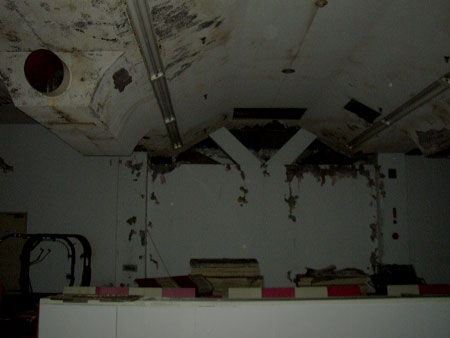レーン西側から東に向かい探索してきましたが、残りのレーンも僅かになりました。 「ピチャッ」「ピチャッ」という不気味な音は相変わらず聞えており、かなり耳障りですが、未だに音の正体をつかむ事が出来ません。 しかも、この辺りから急激に湿度が高くなっており湿気で床も腐っていて、かなり危険な状態です。 クラスターリフトを取り外した床には大きな穴が空いており、周りの床も腐っているので慎重に行動する事にします。 |