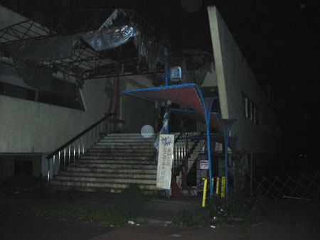愛知県平和町と佐織町の境界に嘗てレーン数240を誇った巨大ボウリング場、トーヨーボール。 ホテルニュージャパン火災の横井一族の次男が社長務める会社・東洋郵船がトーヨーボールを所有していたが、郊外に建てられた巨大過ぎた建物は、やがて経営難を招き倒産、巨大廃墟と化してしまいます。 ここでの怪奇現象ですが、ドスのきいた男の怒りに満ちた声が聞こえるそうです。 これはヤクザの抗争で射殺された男性の声だと云われています。 他に謎の地下室が有るという噂や、何やら怪しい儀式が行われている等、噂の多い廃墟です。 ブルーシャトーでのトラブルによりかなり体力を消耗した私達は、普段より多目の食事を済ませ、何とか気力も体力も復活、巨大ボウリング場廃墟「トーヨーボール」に挑む事にします。 探索日時:2003年5月2日 探索メンバー:管理人ピフィア、副管理人kuniの2名 |