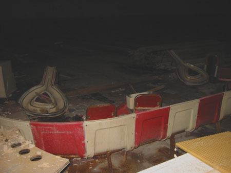 何とか誰にも見つかる事無く侵入に成功しましたが、侵入した場所が県道側でライトの光がかなり目立つのが気になります。 とりあえずライトの目立たないプレイ場の方から探索する事にします。 プレイ場のシーティングはかなり傷みクラスターは完全に破壊されていました。 |