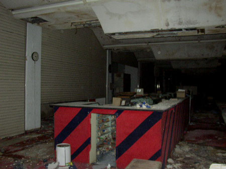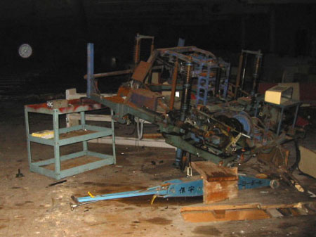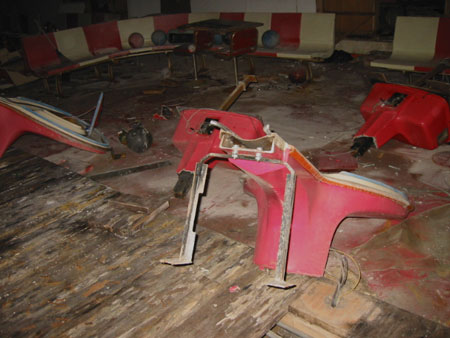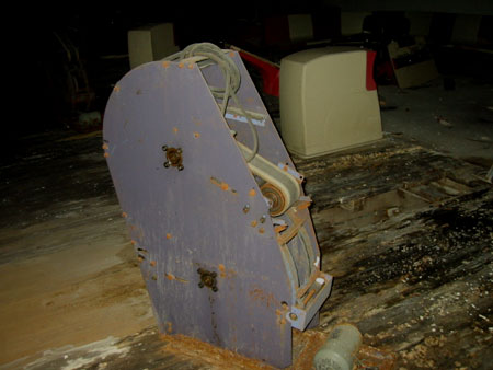 こちらのレーンもクラスターラックは完全に破壊されています。 ボールラックを失い行き場の無くなったボールが何となく寂し気です・・ |